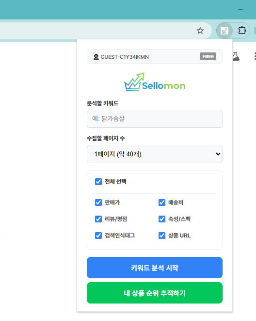 Step 1. 확장프로그램 실행 & 키워드 입력