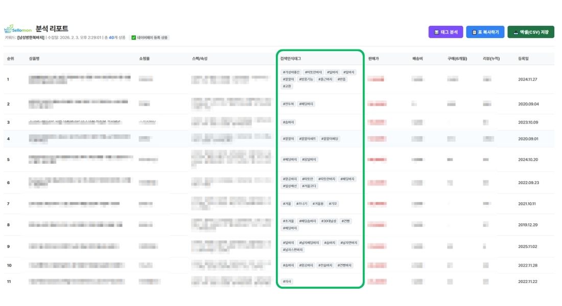 검색 인식이 되는 유효 태그만 쏙쏙 뽑아냅니다.